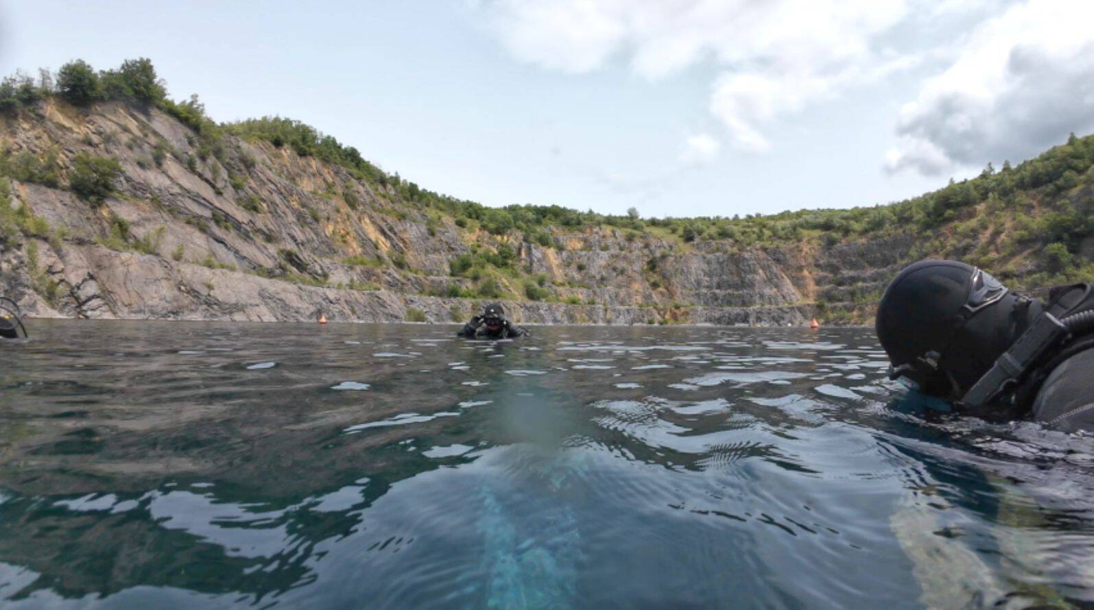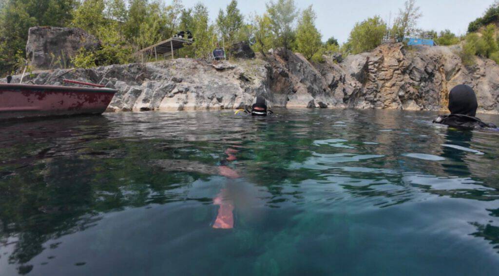 Der Steinbruch Hunsfels im Hunsrück Die kleine Tauchbasis Weg zum See Ganz schön groß Am Einstieg Direkt unter dem Steg Zander mögen klares Wasser In 20m Tiefe Der segelt nicht mehr Aufstieg vergessen ? In 10m Tiefe Sicht 20m weit Flutlicht Zander zum Anfassen Große Barsche gibts auch Der Steinbruch arbeitet noch? überall was zu entdecken Das wars – Zurück gehts